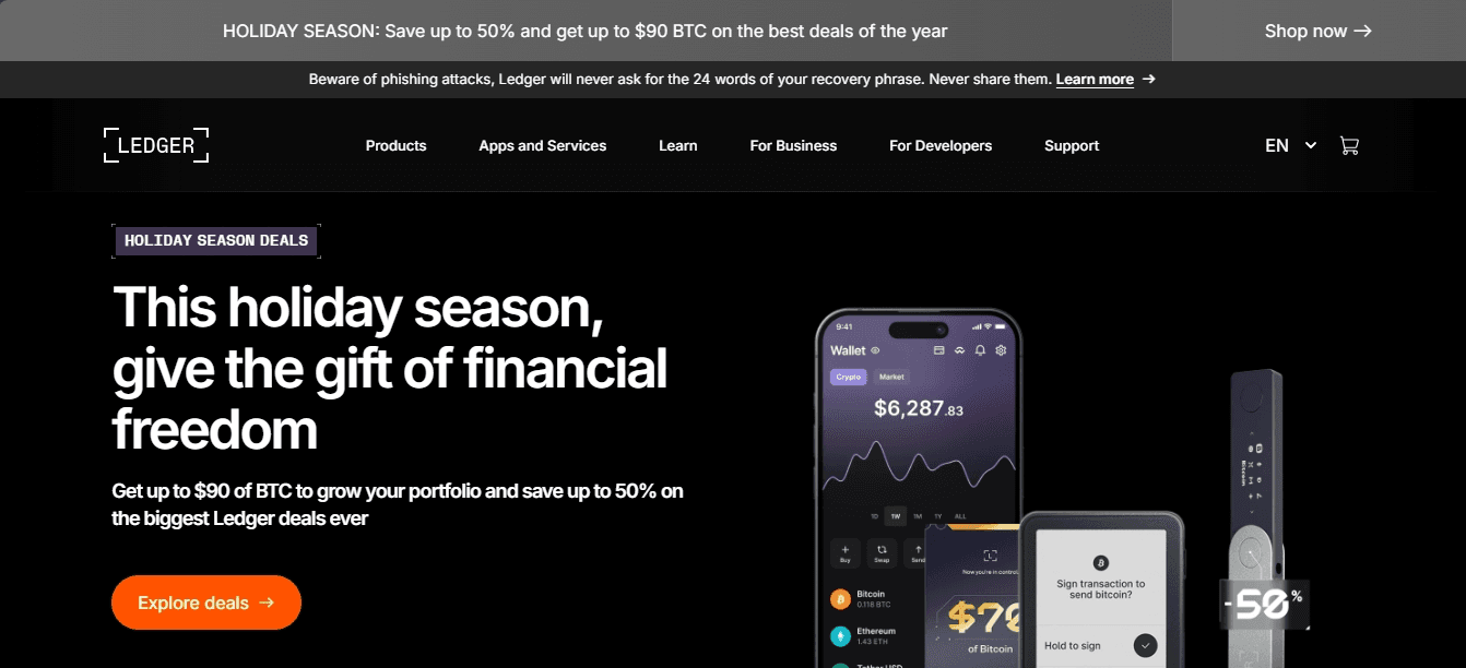 Cross-platform access: Compatible with desktop and mobile devices via Ledger Live.