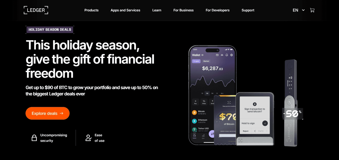 Ledger is a family of hardware wallets that store private keys offline. Ledger devices, such as the Ledger Nano S Plus and Ledger Nano X, protect your crypto from online threats, malware, and phishing attacks.
